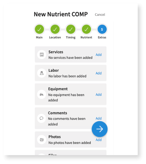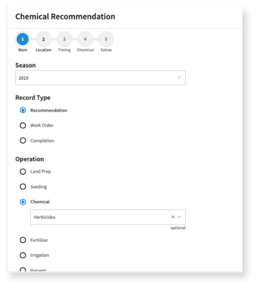 Detail the type of record you are creating. For example, for a Chemical record, you have the ability to note tank size, application method and the chemicals you plan to apply.