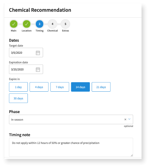 Add timing details by selecting a target date for completion and when it will expire. Utilise custom phases for specialist workflows and view forecast weather information.